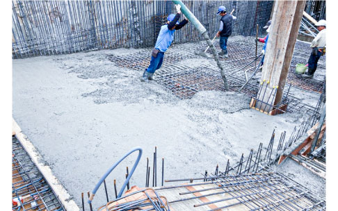 ▲《恆山首恆》地下二樓車道鋼筋綁紮(左)與混凝土澆置作業(右),